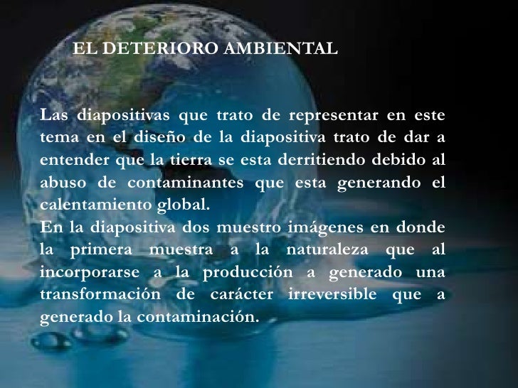 Una vez que las causas del deterioro ambiental han sido identificadas no podemos decir que desconocemos lo que sucede, simplemente se trata de hacernos responsables y tomar las medidas para eliminar las causas dl deterioro ambiental y convertirlas en acciones positivas que permitan la recuperación de nuestro planeta